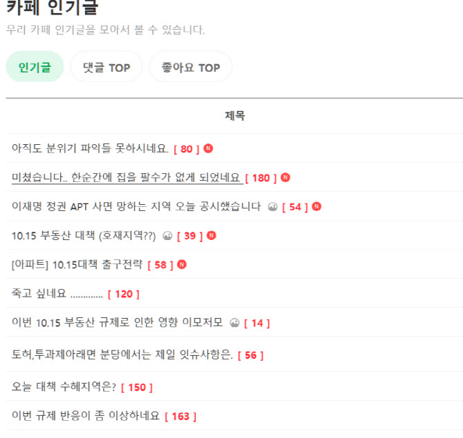 시장 반응도 극단적이다. 미래 차익을 위한 투자 목적으로 부동산 정보를 공유하는 온라인 커뮤니티들에서는 당장 정부를 비난하는 글들이 줄을 잇고 있다. 최대 부동산 커뮤티니로 알려진 네이버 ‘부동산 스터디’ 카페에는 정부 정책을 비판하는 한편 보유한 부동산의 향후 거래에 대해 걱정하는 글들이 줄줄이 인기글로 등록됐다.