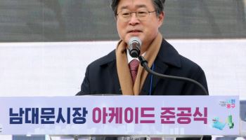 아케이드 준공 인사말하는 김길성 중구청장