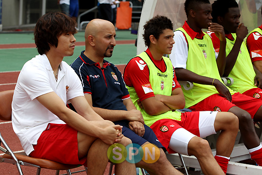 [인천=이데일리 SPN 권욱 수습기자] 11일 오후 인천 문학 월드컵 경기장에서 열린 프랑스리그 AS모나코와 인천 유나이티드와의 친선경기에서 박주영(왼쪽 첫번째)이 경기를 지켜보고 있다.