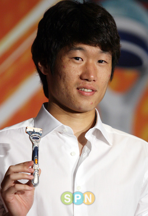 [이데일리 SPN 김정욱기자] 잉글랜드 프리미어리거 박지성이(28. 맨체스터 유나이티드) 22일 오전 서울 한남동 하얏트호텔에서 열린 면도기 브랜드 질레트 '퓨전' 광고 모델 선정 기념식에서 선물로 받은 면도기를 들고 포즈를 취하고 있다.