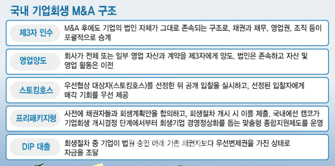 국내에서 회생절차 내 인수·합병(M&A)은 대부분 ‘제3자 인수’ 방식으로 이뤄진다. 이때 인수자는 법원이 인가할 수 있는 계획과 구조가 확보된 경우에만 매물을 검토한다. 그 외 매물은 시장에서 소화되지 못한 채 남게 된다.