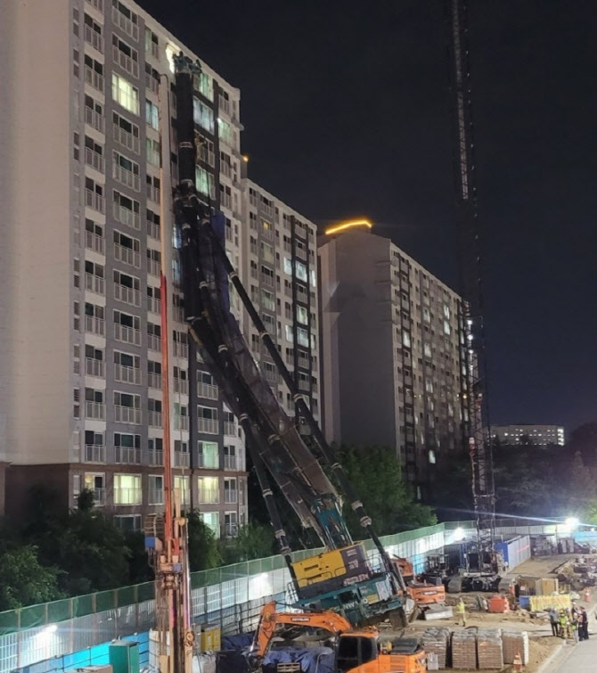 6일 연합뉴스에 따르면 지난 5일 오후 10시 13분께 경기 용인시 기흥구 모 아파트 A동을 대형 중장비가 덮쳤다는 119 신고가 수십 건 접수됐다.