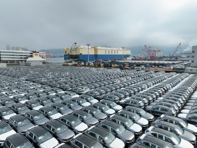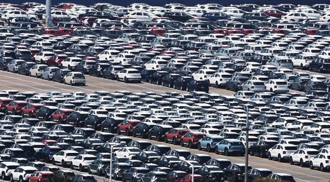 | | 경기도 평택항에 세워진 수출용 자동차. (사진=연합뉴스) |