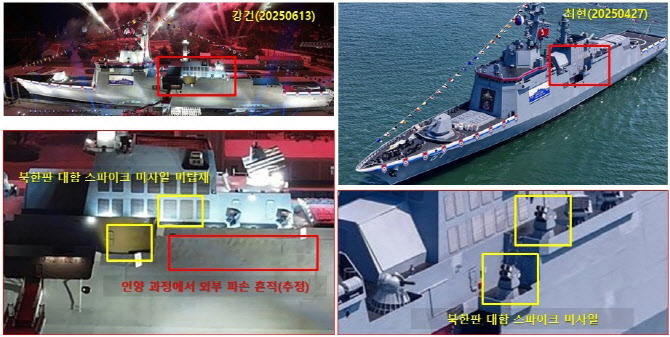 하지만 공개된 사진을 보면 인양 과정에서 외부가 파손돼 복구된 흔적이 있고, 1번함 최현호에는 있는 북한판 대함 스파이크 미사일은 탑재돼 있지 않았다.