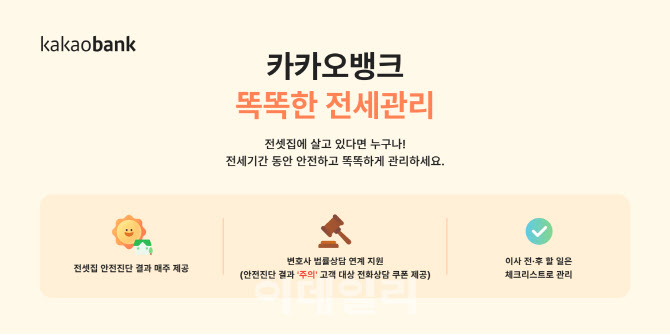 카카오뱅크 관계자는 “고객의 편리한 주거 생활을 돕는 서비스를 넘어 전셋집 관련 궁금증과 불안감을 해소하는 데 도움을 드리고자 서비스 완성도를 높였다”며 “앞으로도 다양한 주거 관련 서비스를 제공해 고객의 편리하고 안전한 주거 생활을 돕겠다”고 말했다.