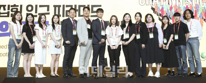 [이데일리 이영훈 기자] 임홍택 작가와 '인구문제 해법제시' 청년기획공모 수상자들이 19일 서울 중구 장충동 서울신라호텔에서 열린 '제16회 이데일리 전략포럼'에서 '청년세대가 그리는 미래' 주제로 발표하고 있다.