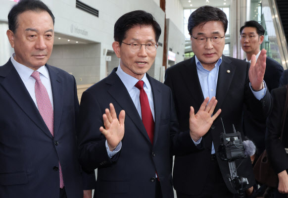앞서 김민서(전북 익산시갑) 등 원외 당협위원장 8명은 이날 서울남부지법에 전국위원회와 전당대회 개최 중단을 요구하는 가처분 신청을 냈다. 이들은 김 후보 캠프 사무실에서 기자회견을 열고 “지도부가 전국위원회 및 전당대회를 무리하게 소집해 김 후보의 민주적 정당성을 훼손하고 후보 지위까지 위협하는 행태가 드러났다”며 “당의 민주적 운영과 절차를 심각하게 위반하는 처사로서 결코 묵과할 수 없다”고 말했다.