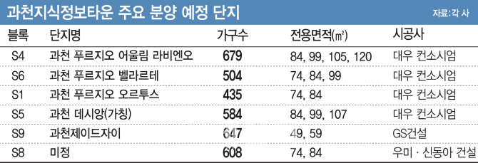 한국토지주택공사(LH)와 대우건설 컨소시엄(이하 대우 컨소)이 공동으로 조성하는 과천지식정보타운은 총 12개 블록에서 아파트 총 8183가구를 짓는다. 이중 대우 컨소는 S6블록, S4블록, S5블록, S1블록 등 총 4개 블록에서 민간 아파트를 공급한다.
