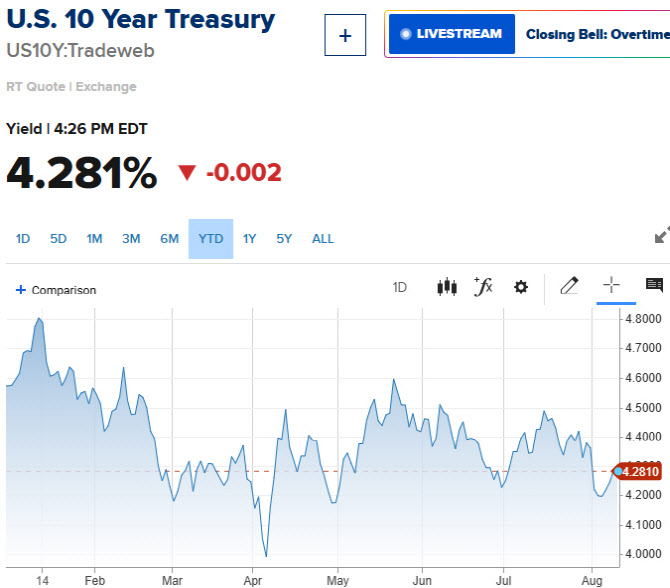 국채금리는 거의 변동 없었다. 오후 4시10분 기준 미 10년물 국채 금리는 4.281%로, 전 거래일 대비 0.4bp(1bp=0.01%포인트) 하락했고, 연준 정책에 민감하게 연동하는 2년물 국채금리는 0.6bp 오른 3.764%에 움직이고 있다.