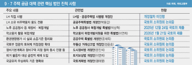 9.7 대책의 핵심 내용인 LH의 택지 매각 금지, 주택 직접 시행을 담은 LH법 개정안은 국회에 제출조차 되지 못했다.