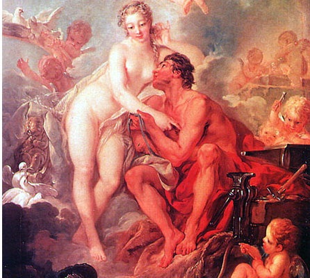 그런데 어찌하여 제우스는 그런 못난 헤파이스토스와 세상에서 가장 아름다운 여인 아프로디테를 결혼시킨 것일까? 바로 제우스의 최강 무기인 번개와 아이기스란 방패를 만들어주었기 때문이라고 한다. 세상 천하의 미인을 부인으로 얻었건만 헤파이스토스는 대장간 일로 바쁘다는 핑계로 아프로디테를 거들떠보지도 않는다.
