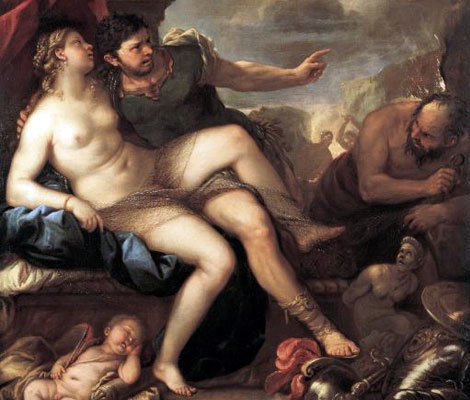 | | ▲ 루카 지오르다노. 청동그물에 걸린 아프로디테와 마르스 17세기. |
