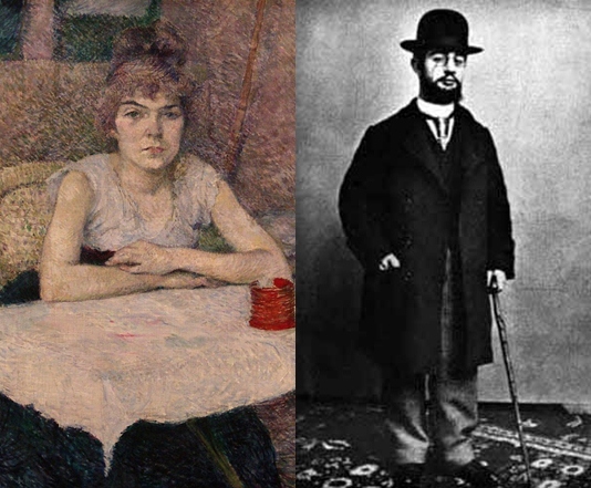 이 신화는 한 예술가와 그의 삶을 떠오르게 한다. 헤파이스토스가 바로 툴루즈 로트렉과 오버랩되는 것이다. 로트렉은 사촌남매 지간의 부모에게서 태어났다. 이런 근친결혼은 그를 152cm의 키에 상반신이 비대한 난쟁이같은 체구를 가진 허약한 인물로 만들었다. 제우스가 헤파이스토스를 천대했던 것처럼, 로트렉의 아버지 역시 자신의 분신으로 멋지게 커줄 것 같지 않은 아들에게 실망하고 무관심하게 대했다. 대신 로트렉은 헤라보다 더 친근하고 모성적인 어머니가 있었다. 늘 아들걱정이 삶의 전부인 수심이 가득한 여자!
