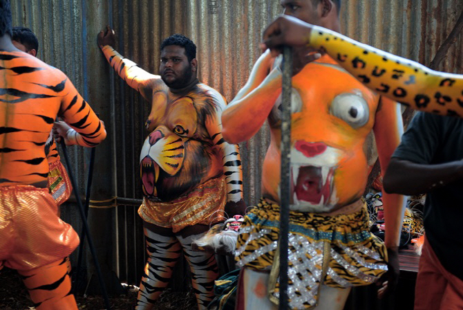 해당 축제에서는 ‘풀리칼리’(Pulikali)라고 불리는 호랑이 춤이 가장 눈길을 끄는데, 이는 온 몸에 호랑이나 사자의 모습을 그려넣은 보디 페인팅(body painting)을 한 남성들이 호랑이를 사냥하는 듯한 안무를 선보이는 것이다.