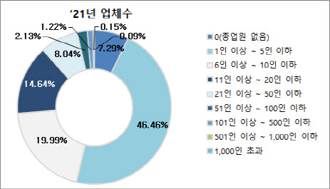 1995년~2003년간 8년새 재활용 업체수는 1550개에서 3009개로 ‘2배’ 늘었다. 시장규모는 2조원에서 5조원으로 연평균 12% 증가했다. 그러나 종업원 50인 이하가 97% 이상이고, 매출액 10억원 미만이 88%를 차지한다. 이는 20여년이 지난 지금도 크게 변화가 없다. 2021년 폐기물재활용 업체수는 6720개, 종업원 50인 이하가 96.4%, 매출액 10억원 미만이 75.9%다. 그나마 자본재 투자가 가능한 매출액 500억원 이상 업체는 50곳으로 전체의 0.7%에 불과하다.