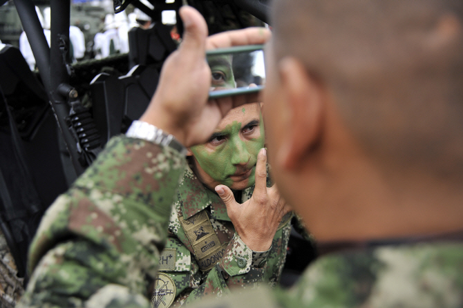 [포토]위장크림 바르는 군인들