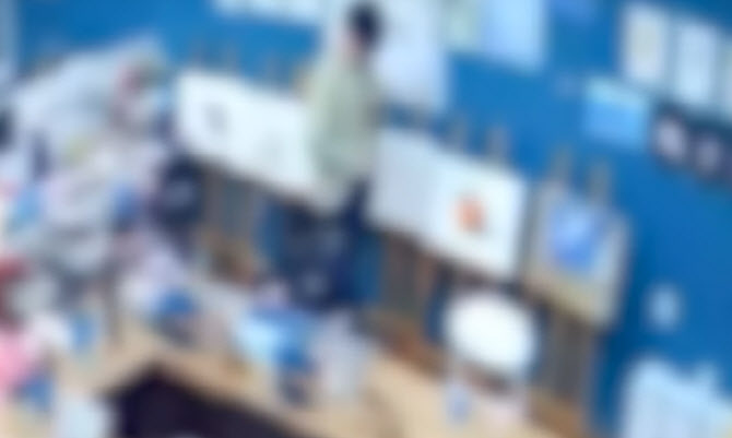 교실을 찍고 있는 폐쇄회로(CC)TV에는 중학교 3학년 남학생이 그림을 그리고 있는 교사 뒤를 서성이는 모습이 담겼다.