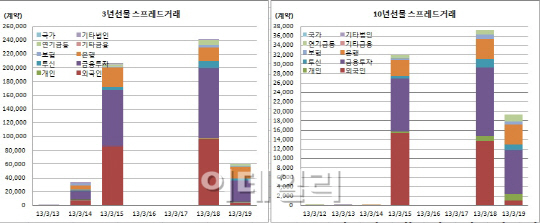 증권사의 한 채권딜러도 “역시 외국인 움직임이 중요할 것 같다. 항상 외인이 롤오버로 매수를 해서 장을 받쳤는데 그간 누적순매수포지션을 크게 줄인터라 매수물량이 적다. 때문에 롤오버 매수 역시 적을 가능성이 높기 때문”이라고 말했다.