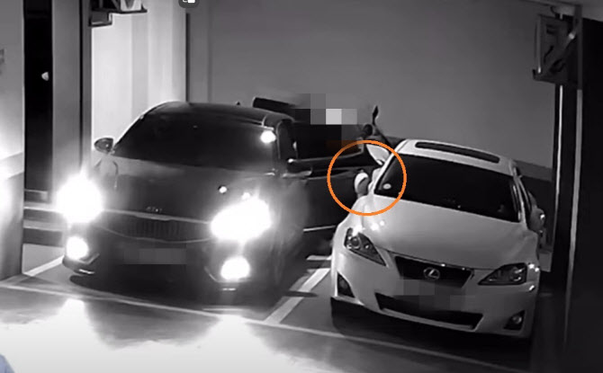해당 영상은 한 주차장의 CCTV에 찍힌 것으로, 오전 2시쯤 제보자 A씨의 승용차 옆 검은 승용차가 주차하는 모습이 담겼다. 검은 승용차를 주차한 남성 B씨는 운전석에서 내리며 문을 활짝 열었고 A씨 차량 조수석에 부딪혔다.