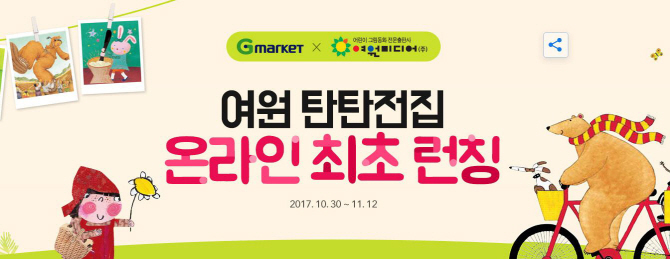 G마켓은 어린이 그림동화 전문출판사 ‘여원미디어’의 유아동 전집 ‘여원 탄탄시리즈’를 다음 달 12일까지 온라인 최초로 단독 판매한다고 31일 밝혔다. 해당 책은 오프라인 서점과 대리점을 통해서만 정가로 판매했다. 여원미디어의 ‘탄탄 그림동화’는 노마 콩쿠르, 볼로냐 아동 도서전, 세계 3대 그림책 상 중 하나로 불리는 BIB(Biennial of illustration Batislava)에서 수상하며 콘텐츠의 우수성을 입증한바 있다. 현재 전 세계 50여개 국에 수출되고 있다.