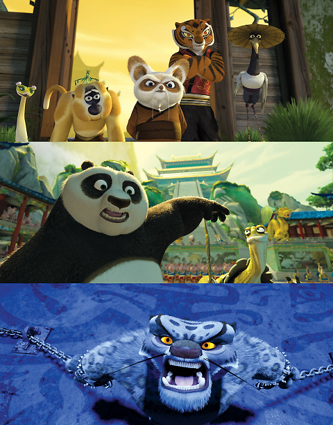 그러나 ‘쿵푸 팬더’에서 이 권법들은 사람이 아닌, 동물과 곤충에 의해 시연된다. 호권은 호랑이 타이그리스, 원숭이권은 원숭이 몽키, 사권은 뱀 바이퍼, 학권은 학 크레인, 당랑권은 사마귀 맨티스가 펼치며 이들은 무적의 5인방으로 불린다. 이들이 펼치는 권법을 보는 것은 분명 상상 속에서나 가능했던 일.
