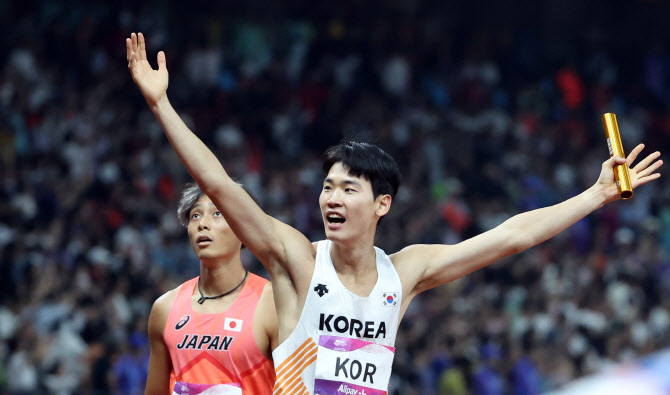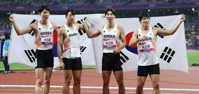 이정태(27·안양시청), 김국영(32·광주광역시청), 이재성(22·한국체대), 고승환(26·광주광역시청)이 이어 달린 한국 남자 단거리 계주팀은 2일 중국 저장성 항저우 올림픽 스포츠센터 주 경기장에서 열린 대회 육상 남자 400m 계주 결선에서 38초74로 3위를 차지했다.