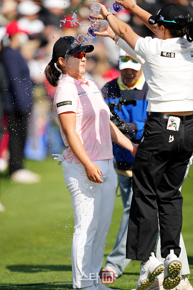 [골프in포토]홍정민,점프로 달려드는 다솜 언니의 물세례