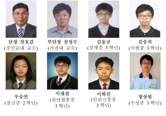 한국 대표팀은 강호감 경인교대 교수를 단장으로, 부단장 전성수(가천대 교수), 김동규(상계중 3학년), 김승직(이현중 3학년), 우승연(잠신중 2학년), 이새찬(천안월봉중 3학년), 이하진(인천신흥중 3학년),정상원(수성중 3학년)학생이 참가했다.